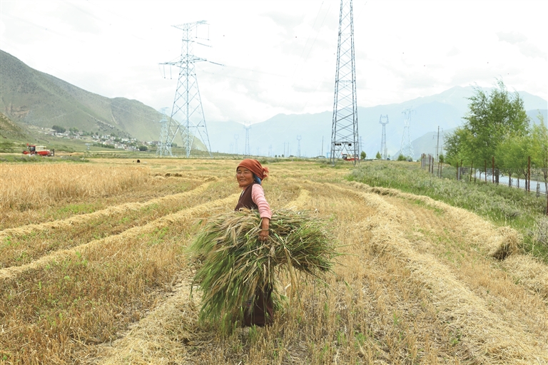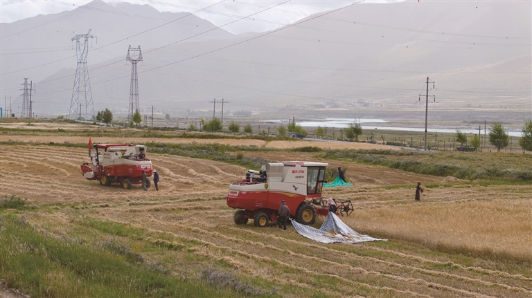 “我家共有37畝農(nóng)田,10畝種小油菜,27畝種青稞?!必暩骂D玉說,小油菜在前兩天已全部收割完畢,每畝產(chǎn)量達(dá)300多斤。從今天起,他們開始收割青稞。家里有4個勞動力,要是放在以前,37畝地的秋收得全家上陣忙一個多月,現(xiàn)在有了機(jī)械化作業(yè),短短幾天就能完成所有收割工作,既省時又省力。