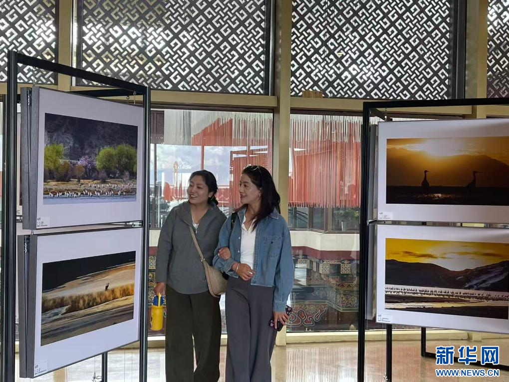 前來觀展的拉薩市民群宗在作品前駐足?!斑@些作品非常震撼,黑頸鶴在濕地嬉戲、在雪中佇立的畫面,讓我仿佛身臨其境??吹剿鼈冏杂蓷⒌臉幼樱屛矣X得每個(gè)人都應(yīng)該行動(dòng)起來,共同保護(hù)好這片珍貴的家園?!彼f。