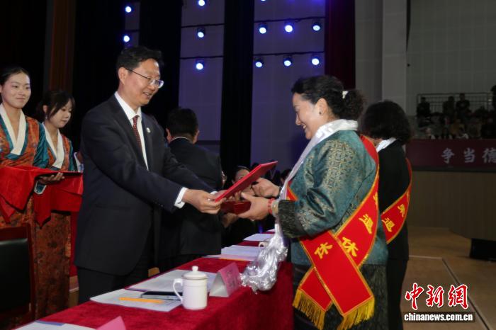 圖為為退休教師頒發(fā)退休證。西藏大學 供圖