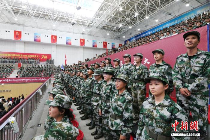 圖為身穿軍訓服的新生。西藏大學 供圖
