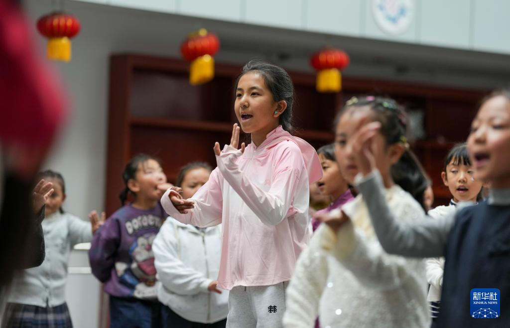 9月11日,在拉薩市實(shí)驗(yàn)小學(xué),藏戲老師帶領(lǐng)孩子們練習(xí)藏戲。新華社記者 晉美多吉 攝