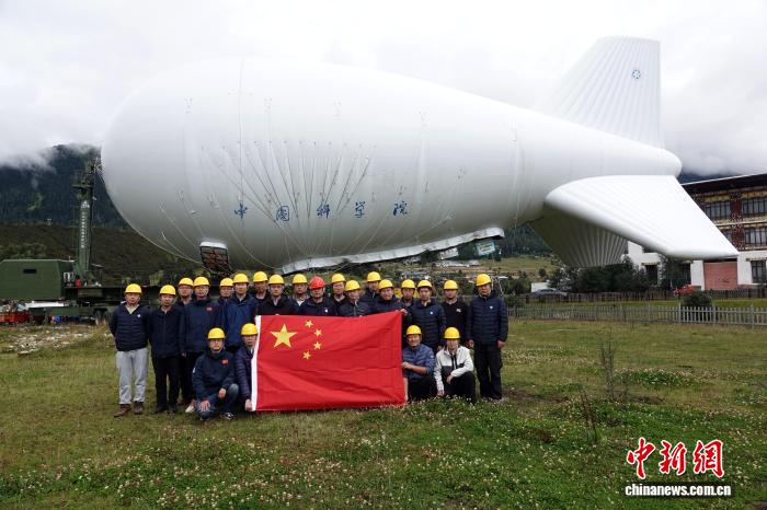 9月18日下午,“極目一號”浮空艇大氣觀測試驗完成任務(wù)前相關(guān)測試工作,項目團隊代表在現(xiàn)場合影。中新網(wǎng)記者 孫自法 攝