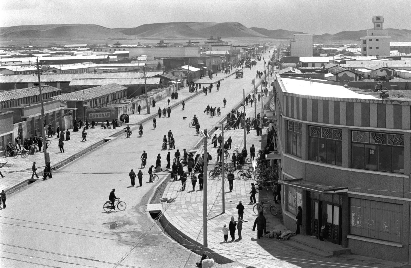 連接西藏和內(nèi)地的交通大動(dòng)脈青藏公路的修筑和暢通,給西藏的經(jīng)濟(jì)發(fā)展帶來(lái)了巨大的變化。圖為1987年青藏公路線上的西藏那曲鎮(zhèn)。