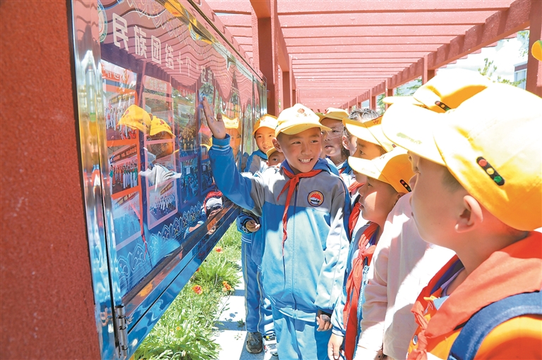 拉薩市墨竹工卡縣南京實驗小學(xué)學(xué)生參觀“民族團(tuán)結(jié)教育主題公園”主題苑。記者 唐斌 通訊員 洛克 攝