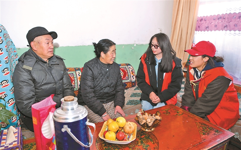 林芝市察隅縣下察隅鎮(zhèn)新村駐村干部入戶到當(dāng)?shù)貎\人群眾家中,輕松愉快地拉家常。記者 白瑪澤旺 次仁平措 攝