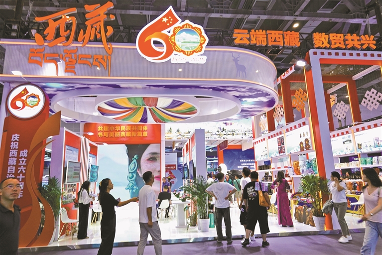 9月25日,第四屆全球數(shù)字貿(mào)易博覽會(以下簡稱“數(shù)貿(mào)會”)在杭州大會展中心啟幕,絲路電商館內(nèi)的西藏展館憑借鮮明的地域特色與發(fā)展亮點,吸引眾多參會者駐足。入口顯眼處高掛西藏自治區(qū)成立60周年慶?;顒踊諛?biāo),既呼應(yīng)重要歷史節(jié)點,更彰顯著高原大地以數(shù)字為翼、加快推進開放發(fā)展的堅定步伐。