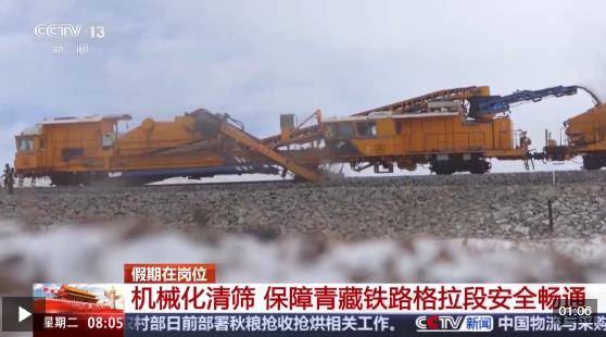 國慶中秋假期是團(tuán)圓時刻,但也有不少人依舊堅守崗位,守護(hù)著千家萬戶的團(tuán)圓。在平均海拔4500米的青藏鐵路格爾木至拉薩段上,西寧工務(wù)機械段的職工們假日不停工,加緊推進(jìn)機械化清篩施工,保障假期高原鐵路的安全暢通。