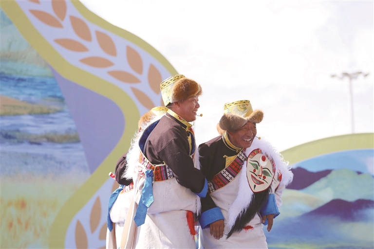 農(nóng)牧民群眾在表演節(jié)目。