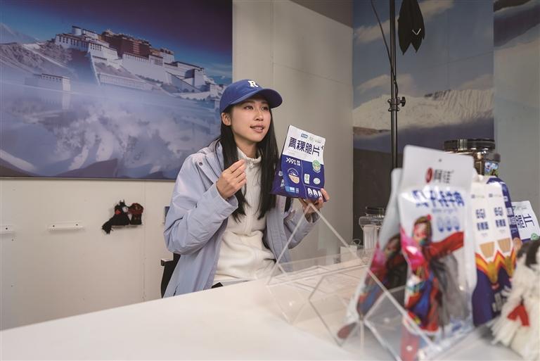 肖博林正在講解青稞脆片。