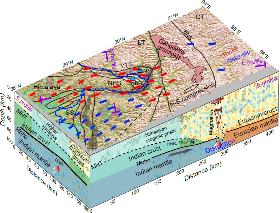 該發(fā)現(xiàn)不僅揭示了喜馬拉雅東端的地震活動(dòng)特征,也為認(rèn)識(shí)整個(gè)喜馬拉雅造山帶的地震破裂行為與隆升機(jī)制提供了新視角。論文共同通訊作者李鴻儒博士表示:“下一步我們將聚焦整個(gè)喜馬拉雅山系的大型逆沖構(gòu)造系統(tǒng),深入揭示大陸碰撞如何控制地震孕育與高原生長(zhǎng)?!?/p>