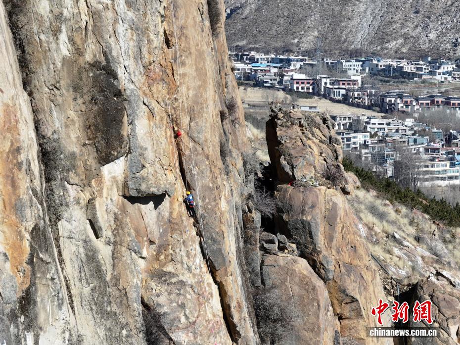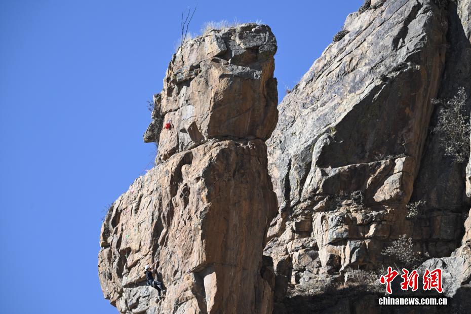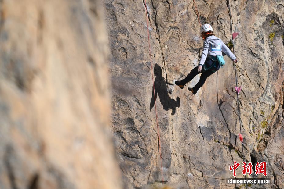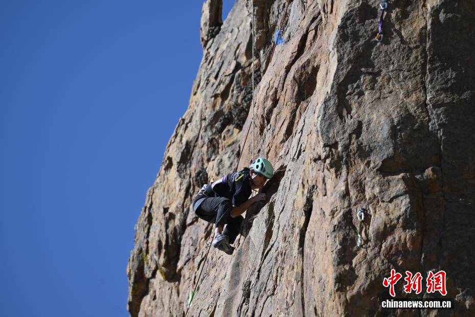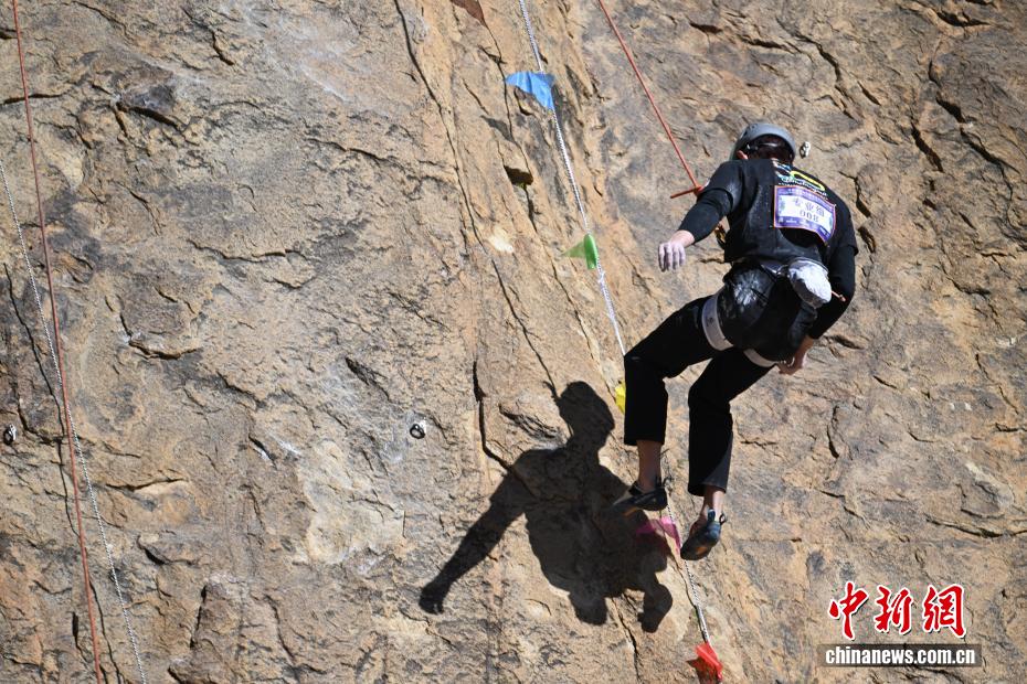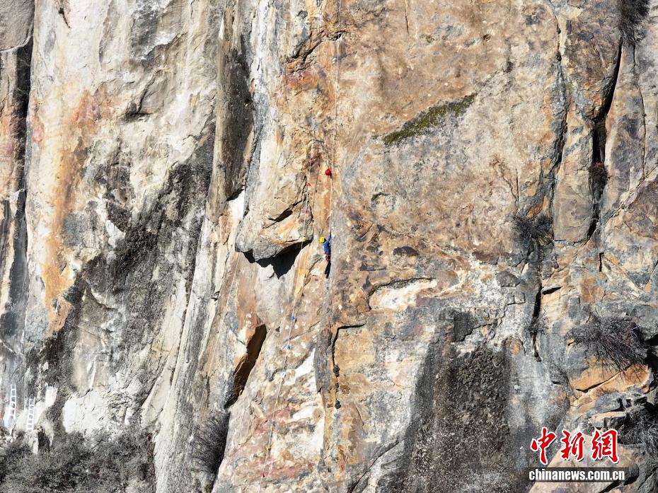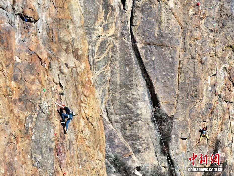 11月29日,2025西藏自治區(qū)攀巖自然巖壁公開賽在拉薩市奪底溝吉倉(cāng)自然巖壁場(chǎng)地開賽。來(lái)自中國(guó)全國(guó)的70名運(yùn)動(dòng)員、高校學(xué)生及社會(huì)攀巖愛(ài)好者參賽。中新社記者 貢嘎來(lái)松 攝