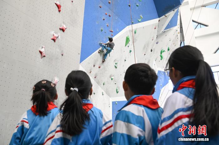 12月5日,西藏登山隊(duì)在拉薩市實(shí)驗(yàn)小學(xué)持續(xù)推進(jìn)“攀巖進(jìn)校園”興趣班活動。據(jù)悉,該興趣班自2025年5月開設(shè),面向三四年級學(xué)生,每周星期五下午組織40余名學(xué)生前往西藏自治區(qū)競技體育管理中心攀巖館,開展攀巖技術(shù)學(xué)習(xí)與興趣培養(yǎng)。圖為拉薩市實(shí)驗(yàn)小學(xué)的學(xué)生在學(xué)習(xí)攀巖。中新社記者 貢嘎來松 攝