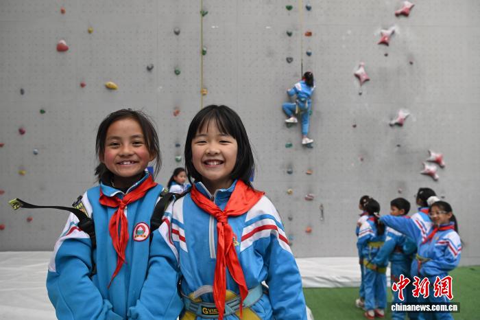 圖為拉薩市實(shí)驗(yàn)小學(xué)的學(xué)生在學(xué)習(xí)攀巖。中新社記者 貢嘎來松 攝