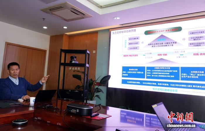 梁爾源研究員介紹青藏高原植樹造林相關研究整體進展情況。中新網(wǎng)記者 孫自法 攝
