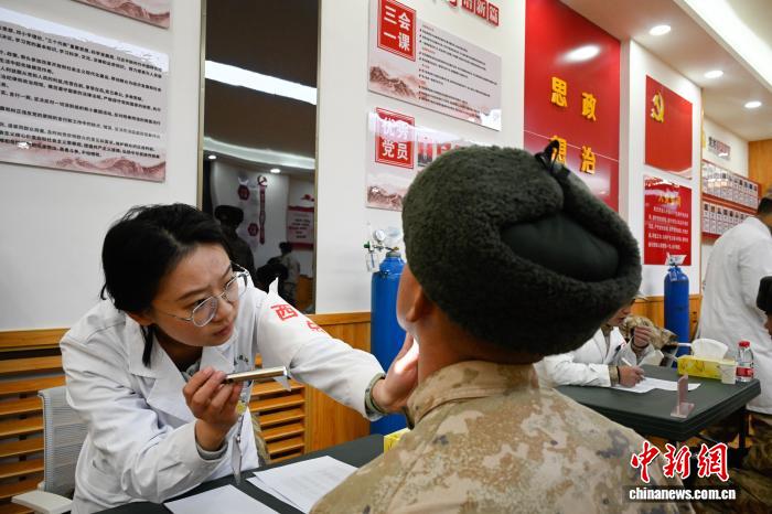 圖為醫(yī)生為部隊官兵檢查身體。西藏軍區(qū)總醫(yī)院供圖