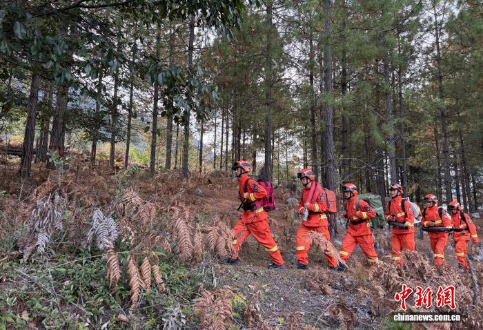 圖為指戰(zhàn)員在林區(qū)攜裝巡護。費賢浩 攝