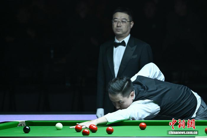 1月1日,中國選手肖國棟在比賽中。當(dāng)日,在西藏拉薩冬季高原斯諾克挑戰(zhàn)賽的比賽中,中國選手肖國棟以5比3戰(zhàn)勝澳大利亞選手尼爾·羅伯遜。中新社記者 貢嘎來松 攝