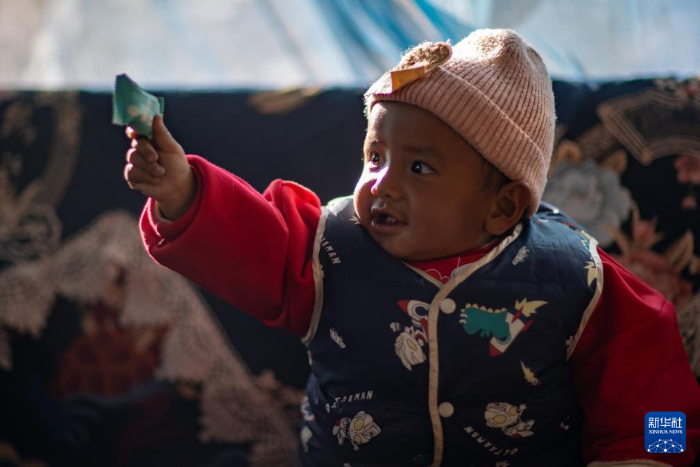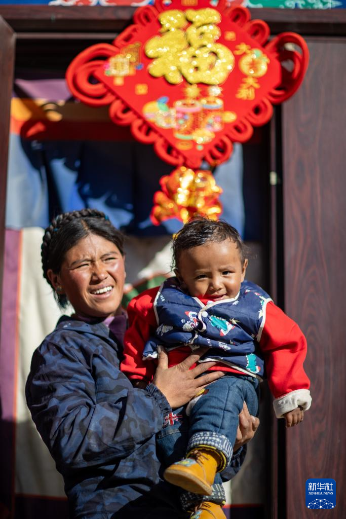 1月5日,在西藏定日縣長所鄉(xiāng)雜村,母親朋瓊在家中逗弄次仁拉巴。新華社記者 姜帆 攝