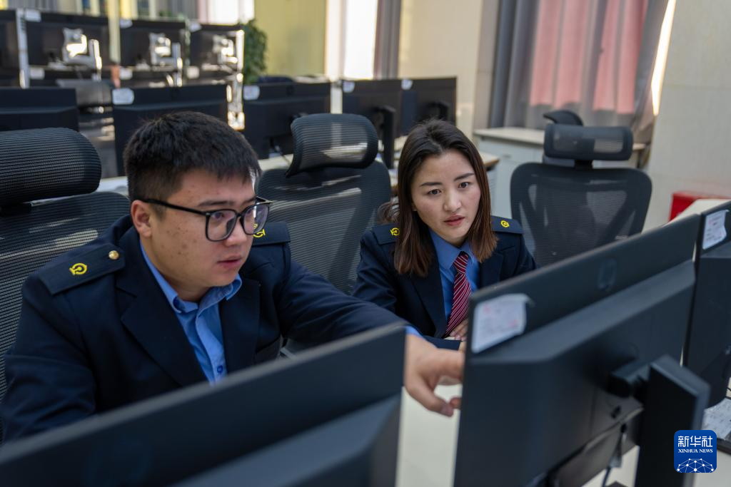 1月6日,拉薩基礎(chǔ)設(shè)施段安全生產(chǎn)指揮中心人員正在進(jìn)行視頻盯控、集中監(jiān)測。新華社記者 旦增尼瑪曲珠 攝