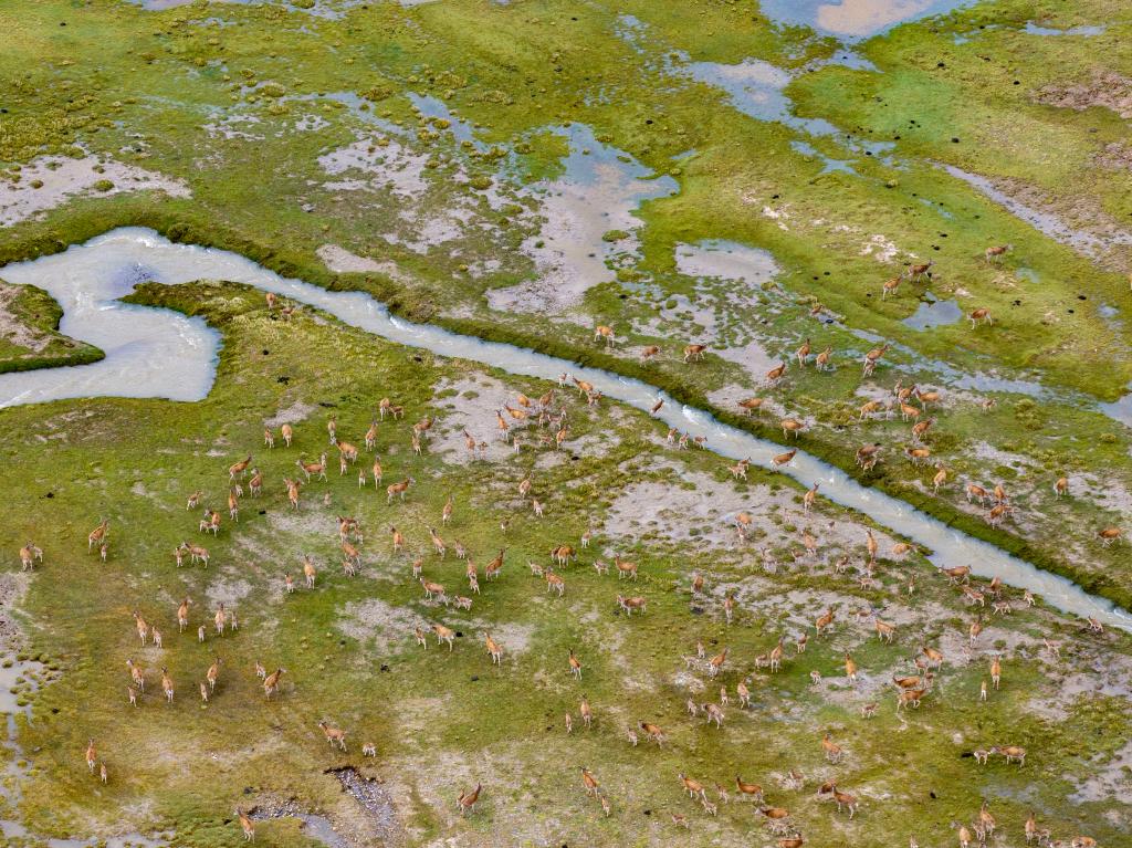 每年7月,在羌塘深處產(chǎn)仔區(qū)域出生的藏羚羊幼崽,都要跟隨母羊遷徙回原棲息地。大群藏羚羊齊聚森隆藏布河西岸,陸續(xù)過河,場(chǎng)面蔚為壯觀,時(shí)間可持續(xù)一周。