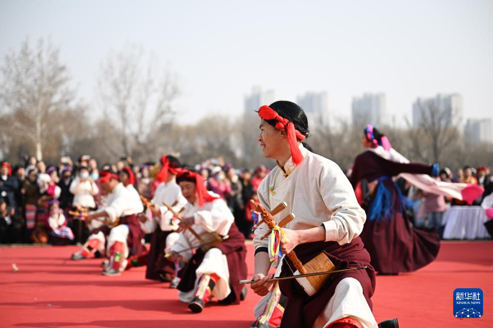 1月17日,一場(chǎng)藏族非遺展演在西安大明宮國家遺址公園舉行,來自西藏自治區(qū)昌都市基層文藝團(tuán)體的演員用精彩的節(jié)目展示藏族文化魅力。新華社記者 張博文 攝