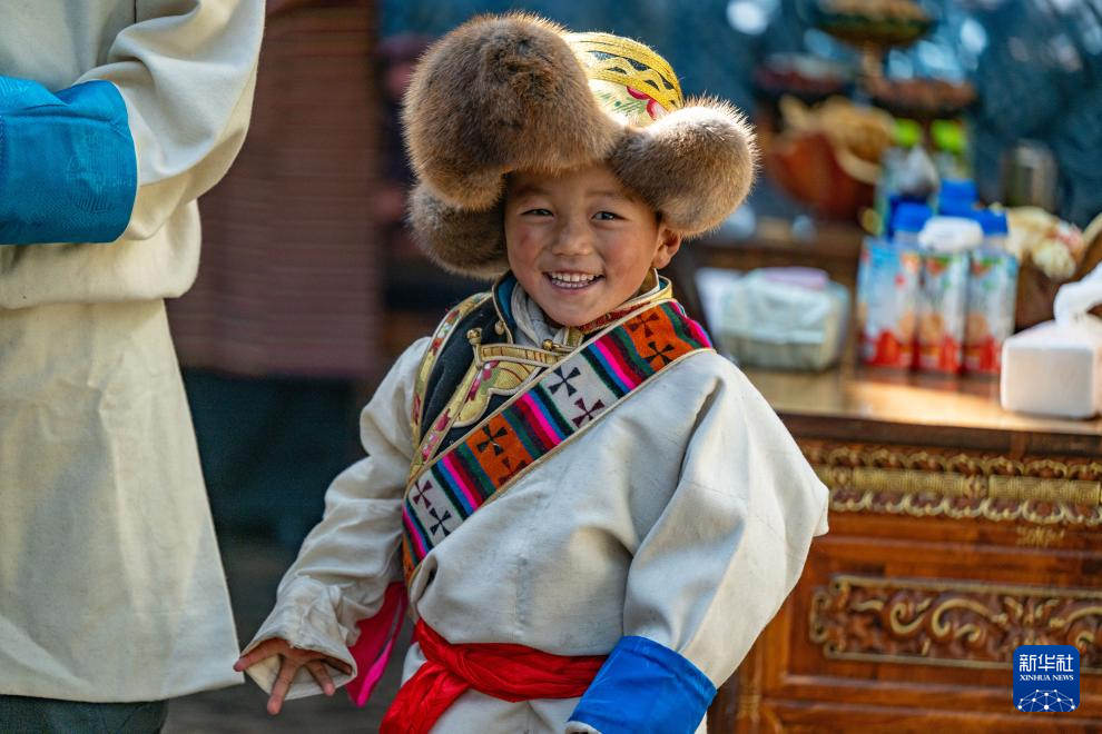 這是日喀則市桑珠孜區(qū)聶日雄鄉(xiāng)楚松村穿上盛裝過(guò)新年的小朋友(1月20日攝)。新華社發(fā)(旦增努布 攝)