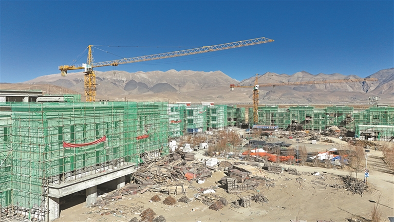 圖為定日縣長所鄉(xiāng)完全小學(xué)重建現(xiàn)場。記者 馬曉艷 楊子彥 旦增嘎瓦 攝