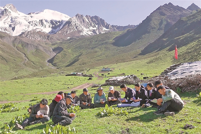 2025年7月,吉隆縣檢察院干警深入邊境向群眾宣傳法律知識(shí)。(本版圖文由西藏自治區(qū)人民檢察院提供)