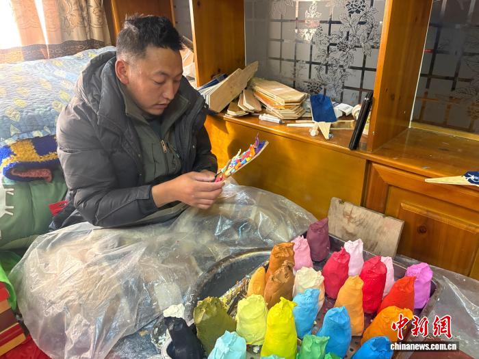 圖為次仁在制作酥油花。旦增尼瑪 攝