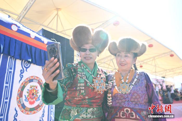 圖為西藏自治區(qū)群藝館老年藝術(shù)團(tuán)演員拍照留念。中新社記者 貢嘎來松 攝
