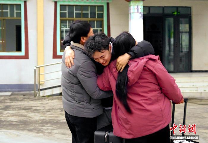 圖為何軍杰與從安徽合肥遠(yuǎn)道而來的父母團(tuán)圓。受訪者供圖