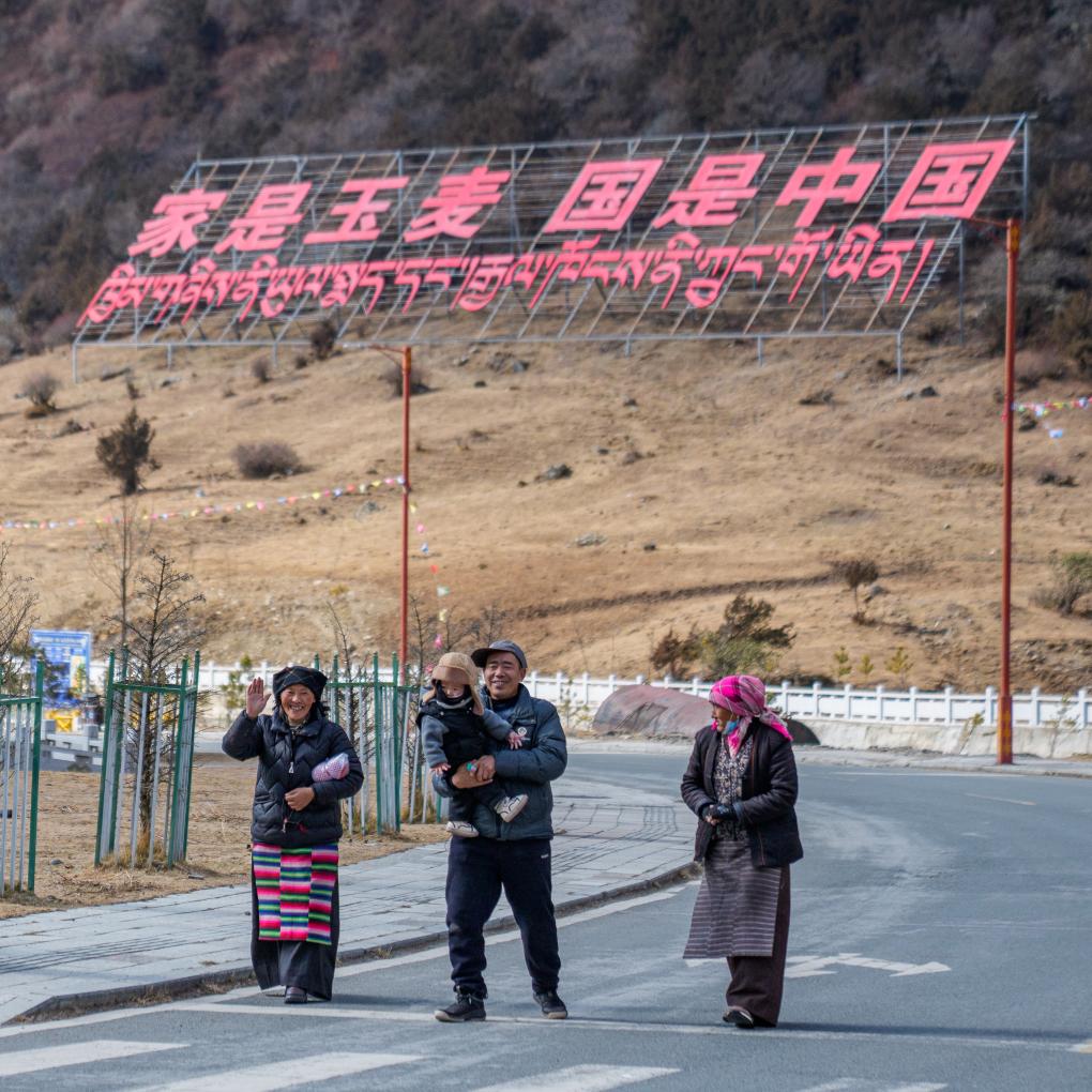 2026年2月5日,玉麥鄉(xiāng)村民在村里散步。新華社記者 丁增尼達(dá) 攝