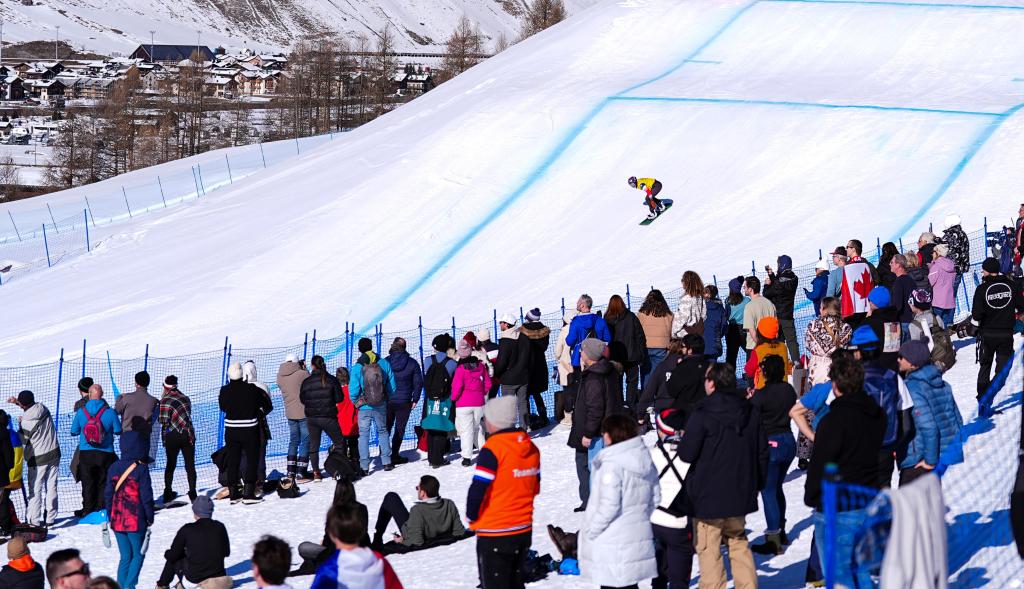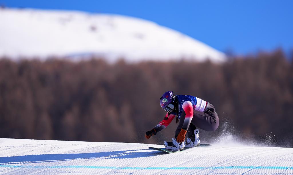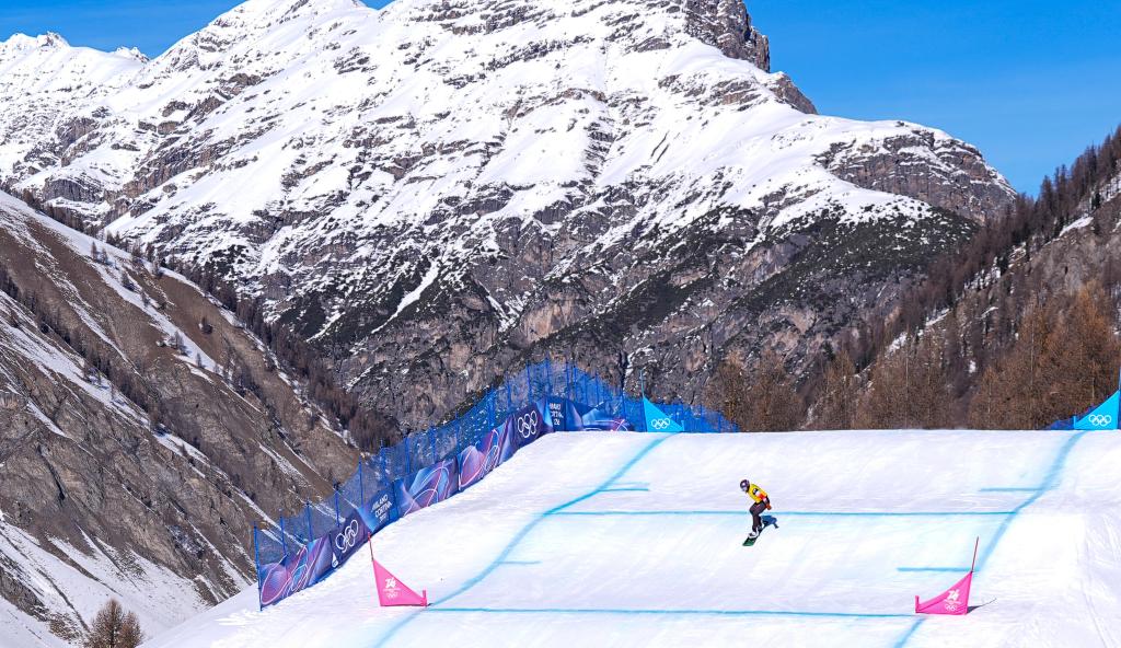 13日,米蘭冬奧會(huì)單板滑雪女子障礙追逐比賽在這里進(jìn)行。22歲的藏族姑娘擁青拉姆滑過終點(diǎn)線后停住,扶了扶雪鏡,站著緩了一會(huì)兒。她沒有立刻去看成績(jī),而是抬頭望向剛剛滑下來的那條賽道——半壁、跳臺(tái)、彎道一段段延伸向山腳。