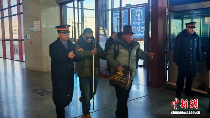 圖為日喀則站客運(yùn)工作人員幫扶盲人進(jìn)站候車(chē)。拉薩車(chē)務(wù)段 供圖
