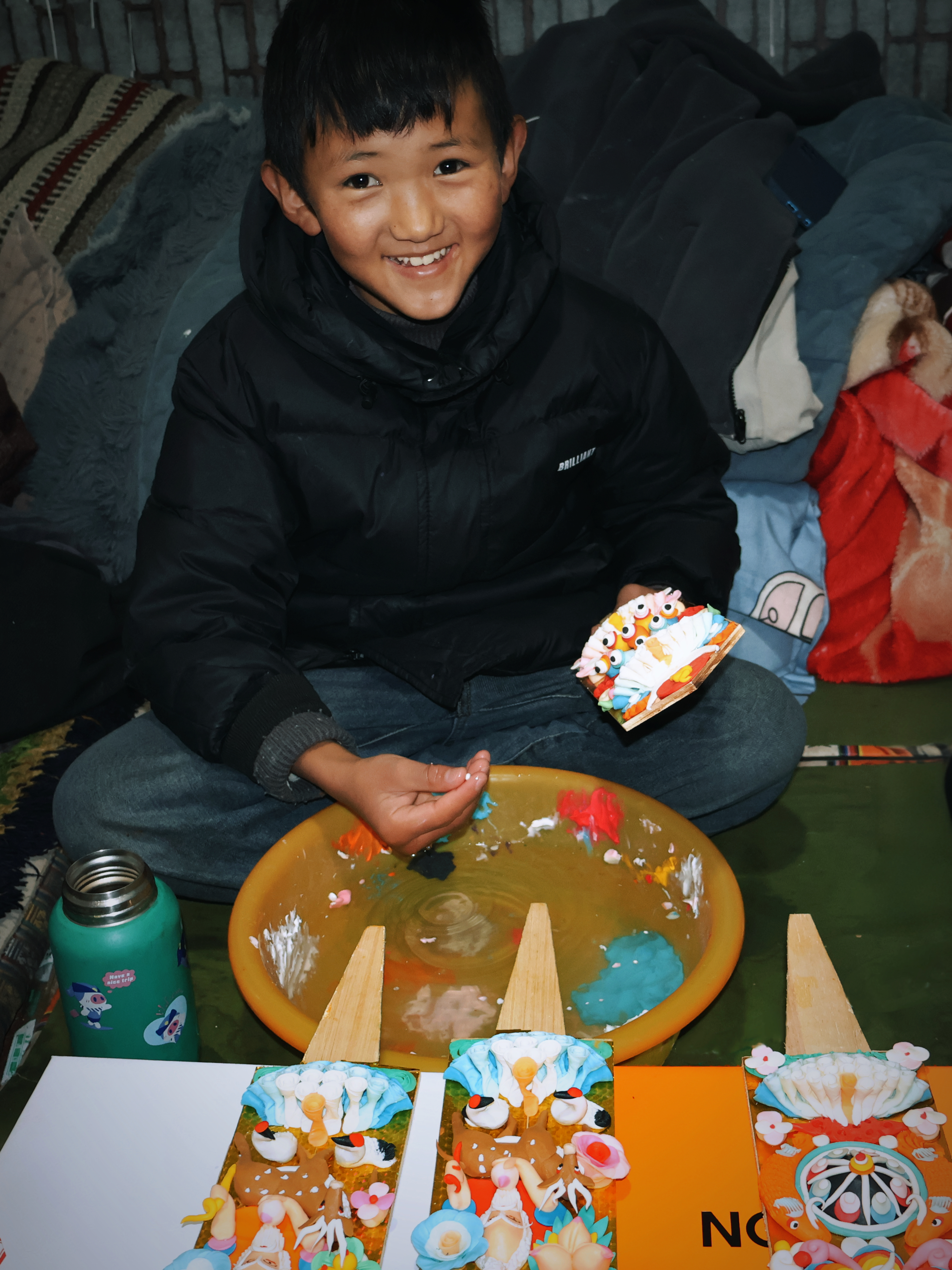 他叫平措,正埋頭專注地整理材料,不時(shí)還會(huì)拿起一塊酥油,嘗試著捏出簡單造型。