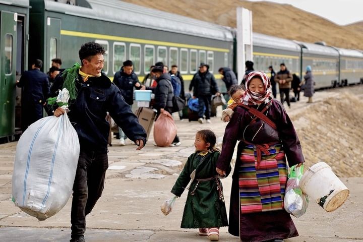 “妻子帶著兩個(gè)女兒在那曲上學(xué),我去接她們回來(lái)過(guò)年。現(xiàn)在能在家門(mén)口上火車(chē)方便多了,我們護(hù)路的工作干得也更有勁頭?!鼻镉X(jué)說(shuō)。