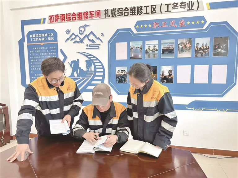 經(jīng)過系統(tǒng)規(guī)范的三級(jí)培訓(xùn),2025年10月,嘎瑪倫珠與白瑪措姆一同被分配到扎囊綜合維修工區(qū)。對(duì)于他們,這是職業(yè)生涯的嶄新起點(diǎn),也是一場(chǎng)回饋家鄉(xiāng)、建設(shè)家鄉(xiāng)的初心之約?!吧铣踔袝r(shí),第一次看見飛馳的火車,我心里便有了一個(gè)疑問,它是如何在這片高天厚土間穩(wěn)穩(wěn)穿行的?如今,我終于穿上作業(yè)服,成了守護(hù)列車前行的一員,這份驕傲,早已深深鐫刻在心底?!闭劶俺跣?,嘎瑪倫珠的眼眸里,蕩漾著藏不住的自豪與堅(jiān)定。