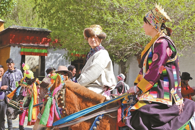 游客在瓊結(jié)縣步行街體驗騎馬。倫珠澤仁 攝