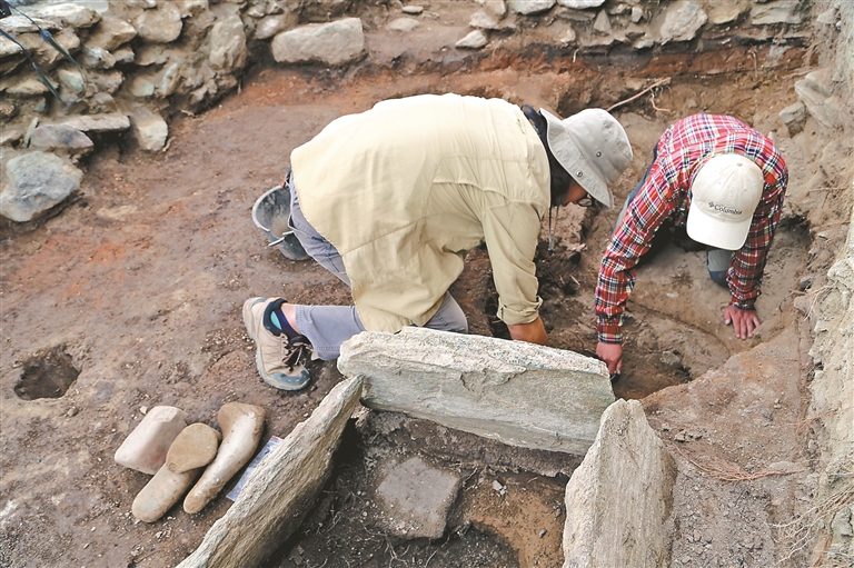 瓊結(jié)縣下水鄉(xiāng)幫嘎遺址考古發(fā)掘現(xiàn)場(資料圖片)。倫珠澤仁 攝