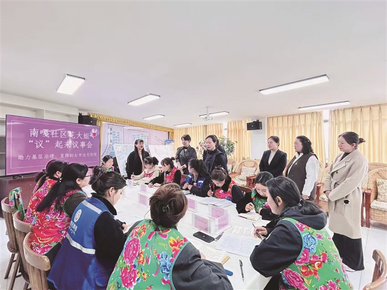 依托區(qū)委“聚龍”黨建品牌,堆龍德慶區(qū)婦聯(lián)培育“龍姐”為民服務(wù)品牌,打造有溫度的服務(wù)名片。張峰瑋表示:“要讓‘龍姐’成為婦女最親近的依靠?!比缃窬S權(quán)幫扶、政策宣講等服務(wù)已實現(xiàn)全域覆蓋,“找龍姐、信龍姐、靠龍姐”成為群眾共識,婦聯(lián)凝聚力持續(xù)增強。同時,聚焦基層治理,堆龍德慶區(qū)婦聯(lián)推動婦女議事會擴面增效,阿佳“議”起來議事會、“花大姐”議事會等在各村(社區(qū))蓬勃開展,引導(dǎo)婦女從旁觀者轉(zhuǎn)變?yōu)橹魅宋?,以女性智慧為鄉(xiāng)村振興注入活力。張峰瑋說:“要讓婦女敞開心扉聊家事、議村事,讓心聲有人傾聽、訴求有人回應(yīng)。”