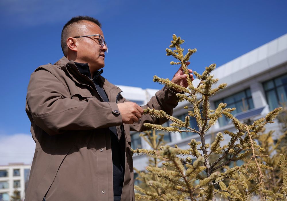 3月20日上午10點(diǎn)30分,扎西像往常一樣來(lái)到市科技局的院子里,仔細(xì)查看樹(shù)木的長(zhǎng)勢(shì)。他彎腰伸手,摸了摸樹(shù)的葉子和枝條,又踩了踩樹(shù)下的土壤?!霸蕉闆r總體穩(wěn)定,也有了返青跡象,可以開(kāi)始澆水、施肥了?!痹餍老驳卣f(shuō)。