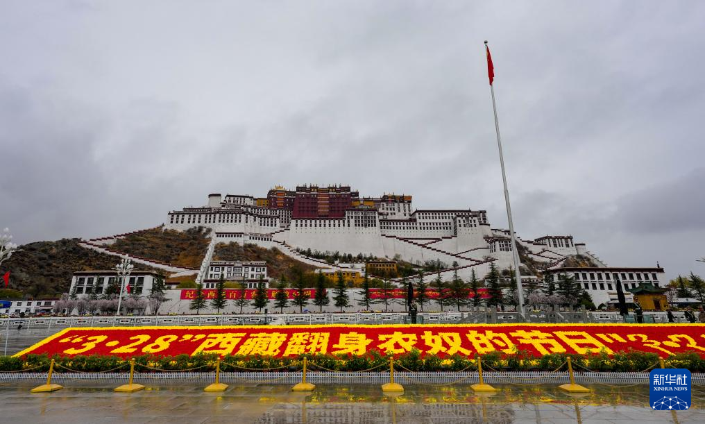 3月28日,布達拉宮廣場舉行升國旗儀式,隆重紀(jì)念西藏百萬農(nóng)奴解放67周年。新華社記者 丁增尼達 攝