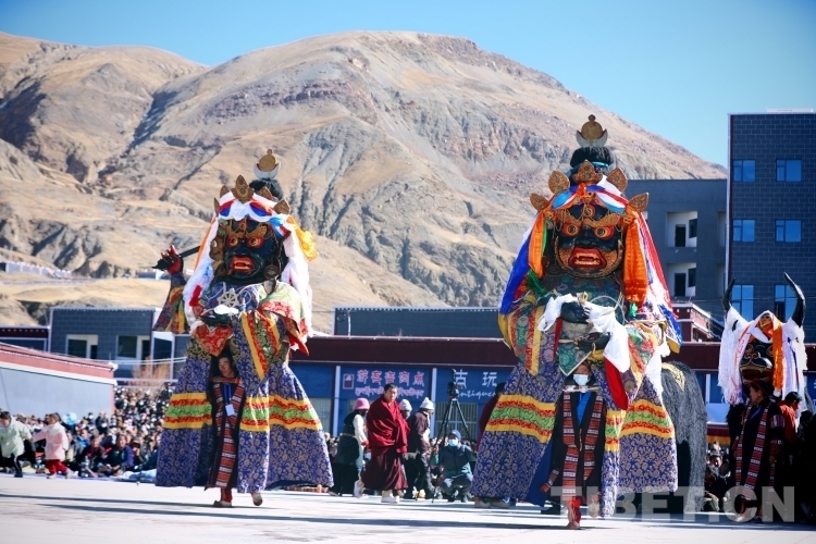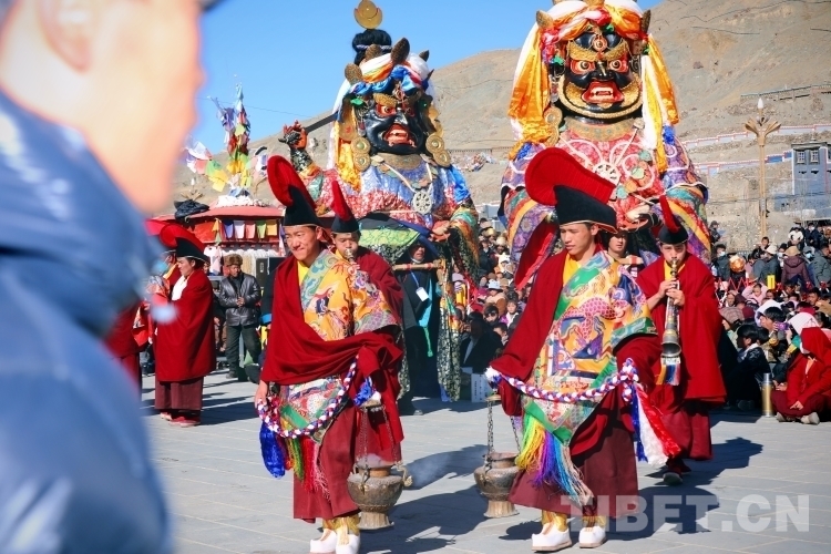 西藏薩迦寺舉行一年一度的“堆慶”宗教神舞表演