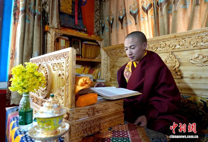 “哲學(xué)類的書籍很有趣,閱讀中會(huì)聯(lián)想到佛陀思想的異同?!痹谖鞑刈灾螀^(qū)昌都市邊壩縣拉孜寺的僧舍里,阿旺洛?!は虬涂酥檎陂喿x自己心儀的書籍。