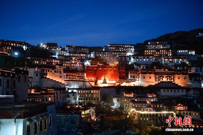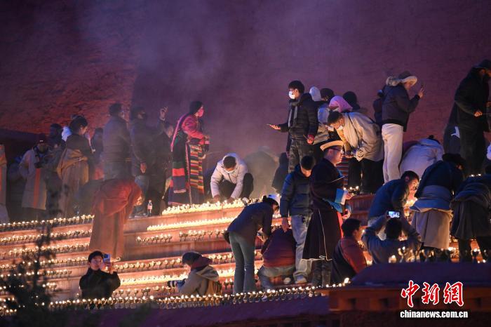 圖為燃燈日酥油燈點(diǎn)亮甘丹寺。 中新社記者 貢嘎來松 攝