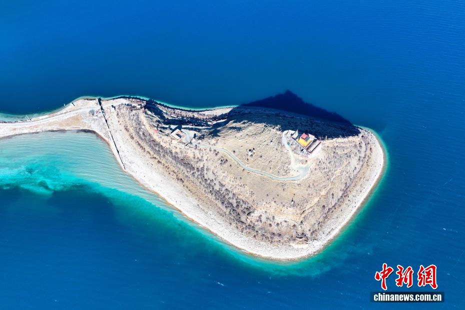1月17日,西藏羊卓雍錯日托寺風光。日托寺位于羊卓雍錯東北岸一半島上,是半島上僅有的建筑,形成了“古剎”“孤寺”景觀,近年在網(wǎng)絡平臺持續(xù)火熱,成為游客打卡西藏的熱門地標。中新社記者 貢嘎來松 攝(無人機照片)
