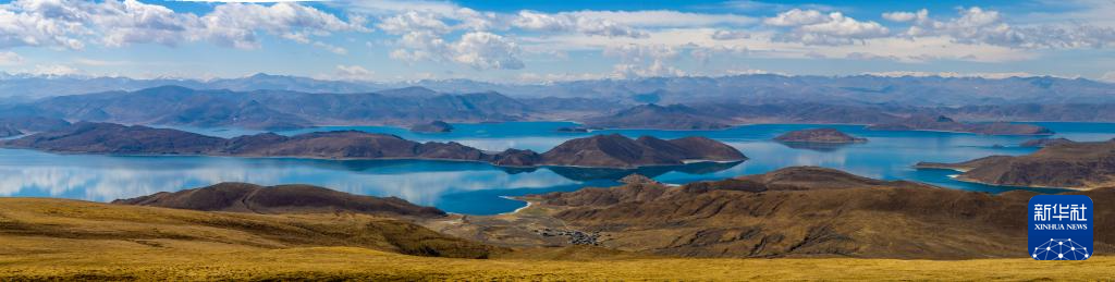 從喀慶拉山上俯瞰羊卓雍錯(拼接照片,4月5日攝)。新華社記者 姜帆 攝