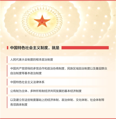 先進科學的制度。制度能夠自我完善、自我革新,得益于制度設計的先進性、科學性。中國制度堅持科學社會主義基本原則,具有鮮明中國特色,遵循中國社會發(fā)展規(guī)律、制度建設規(guī)律,是先進的、科學的制度。作為一套相互銜接、相互聯(lián)系的制度體系,它為在堅持根本制度、基本制度前提下改革完善各項體制機制奠定了堅實基礎,為發(fā)揮制度優(yōu)勢提供了有力保障。正如習近平同志所指出的,“中國特色社會主義制度,堅持把根本政治制度、基本政治制度同基本經(jīng)濟制度以及各方面體制機制等具體制度有機結(jié)合起來,堅持把國家層面民主制度同基層民主制度有機結(jié)合起來,堅持把黨的領導、人民當家作主、依法治國有機結(jié)合起來,符合我國國情,集中體現(xiàn)了中國特色社會主義的特點和優(yōu)勢,是中國發(fā)展進步的根本制度保障。”