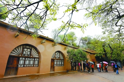 延安有中國保存最完整、面積最大的革命舊址群。圖為游客在陜西延安棗園革命舊址參觀。新華社發(fā)