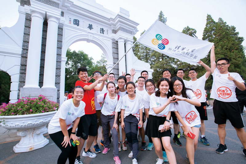 每年的畢業(yè)季,清華大學(xué)都會(huì)舉行畢業(yè)長(zhǎng)跑,即將離開母校的學(xué)子們沿著精心設(shè)計(jì)的路線,依次跑過(guò)那些承載著清華記憶的場(chǎng)所,重溫“自強(qiáng)不息 厚德載物”的校訓(xùn),上好離校前的“最后一課”。圖為2018年7月4日,畢業(yè)生們?cè)谥黝}為“擁抱新時(shí)代 青春正起航”的長(zhǎng)跑活動(dòng)中在二校門前合影。 清華大學(xué) 李浩然/攝